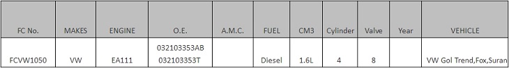 发动机型号:EA111 车型:VW SURAN 1.6L O.E.: 032103353T