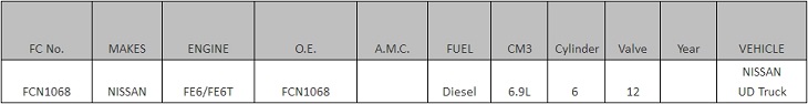 发动机型号:FE6/FE6T, 车型:Nissan, O.E.: FCN1068